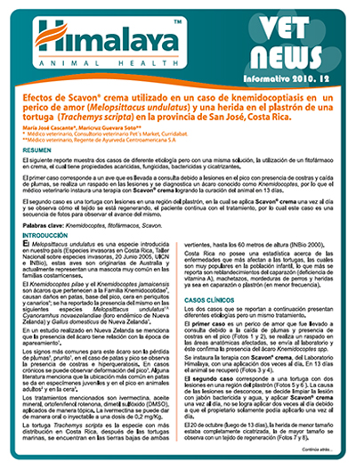 Efectos del Scavon® Vet crema en un caso de knemidocoptiasis...